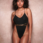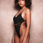 - One-piece swimwear with extra high leg cut