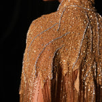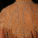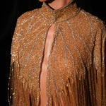 - Handmade designed gold and silver sequins, glass beads and stones with gold fringes