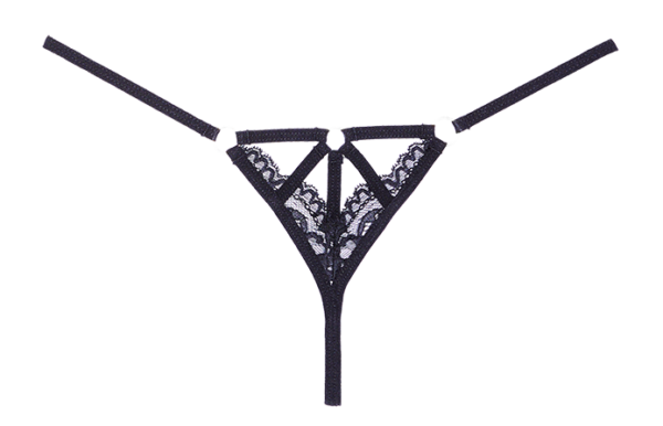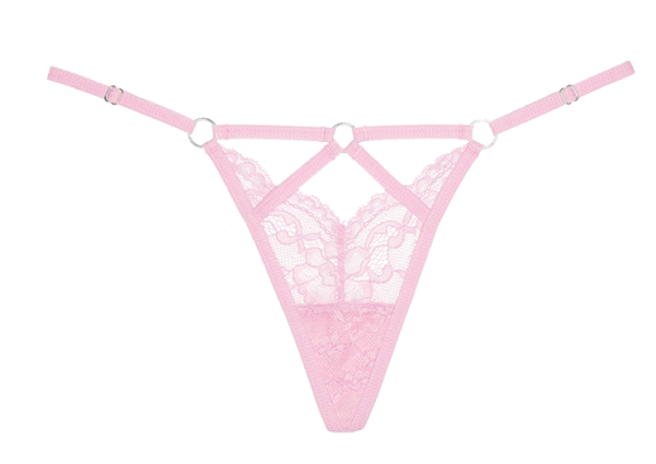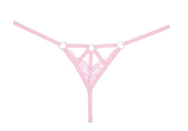 - Bondage inspired strappy panty with naughty ring details, and scalloped lace.