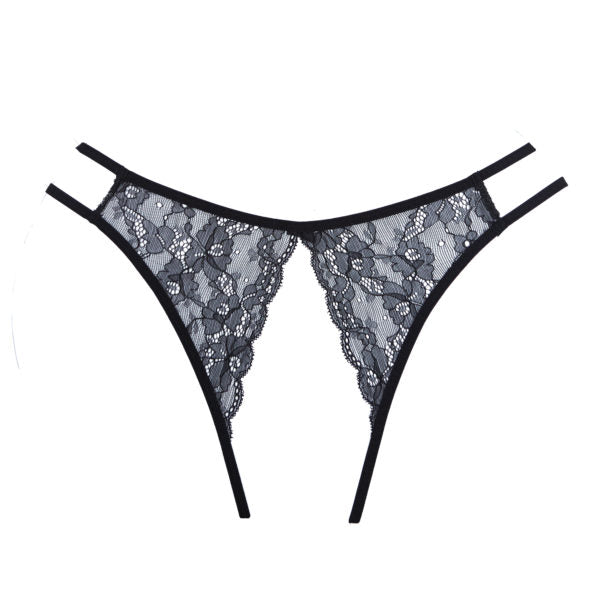 - Irresistibly charming. Yet seductive beyond… Ouverte front & back lace Panty. Double side straps hug the waist, scalloped lace accentuates the bum.