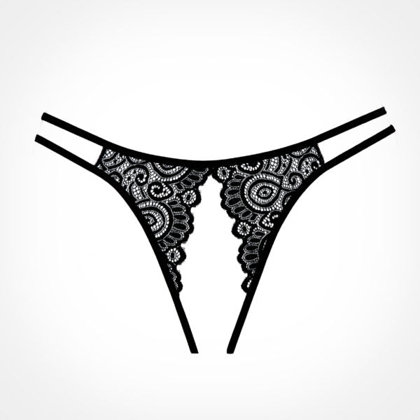 - Your heart skips a beat in this delicate galloon lace panty, giving more than a peak in front, while shamelessly flirting in the ultra ouverte back.