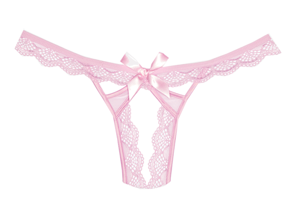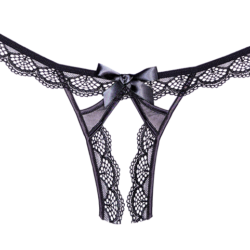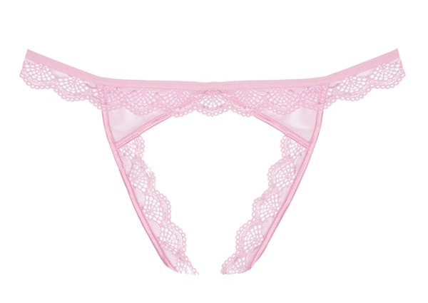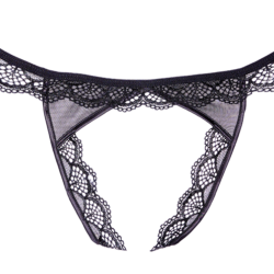 - Fully open panty with mesh inserts, scalloped lace sides and waist.