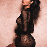 - Figure-hugging diamond net pattern with sheer mesh detailing