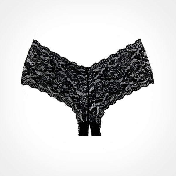 The classic lace booty short gone wilde with a crotchless twist, hugging the hips and sweetening the derriere.
