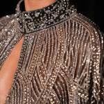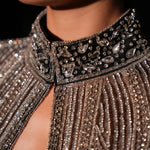 - Handmade designed silver sequins, glass beads and stones with silver fringes