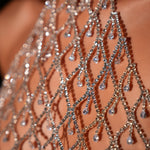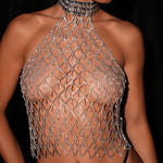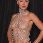 Turn heads with this show-stopping halter top, crafted from a web of shimmering crystals that drape beautifully over the body.