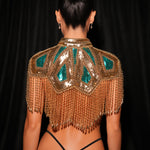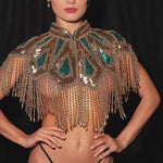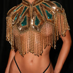 The structured high-neck design adds a bold, royal touch, perfect for luxury events, stage performances, or unforgettable nights out.