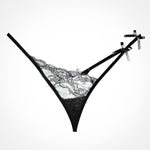 Delicate g-string with lace front panel, and a hint of lace in the back
