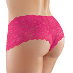 The classic lace booty short gone wilde with a crotchless twist, hugging the hips and sweetening the derriere.