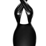 - Powerwetlook halter mini-dress with neck wrap