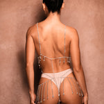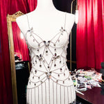 Step into divine elegance with Crystal Fall, a breathtaking, statement-making piece designed to adorn your body in cascading crystals. Featuring a mesmerizing web of shimmering rhinestones and teardrop gems, this bodysuit is the epitome of luxury and seduction.