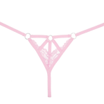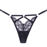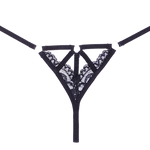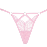 - Bondage inspired strappy panty with naughty ring details, and scalloped lace.