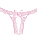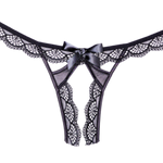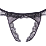 - Fully open panty with mesh inserts, scalloped lace sides and waist.
