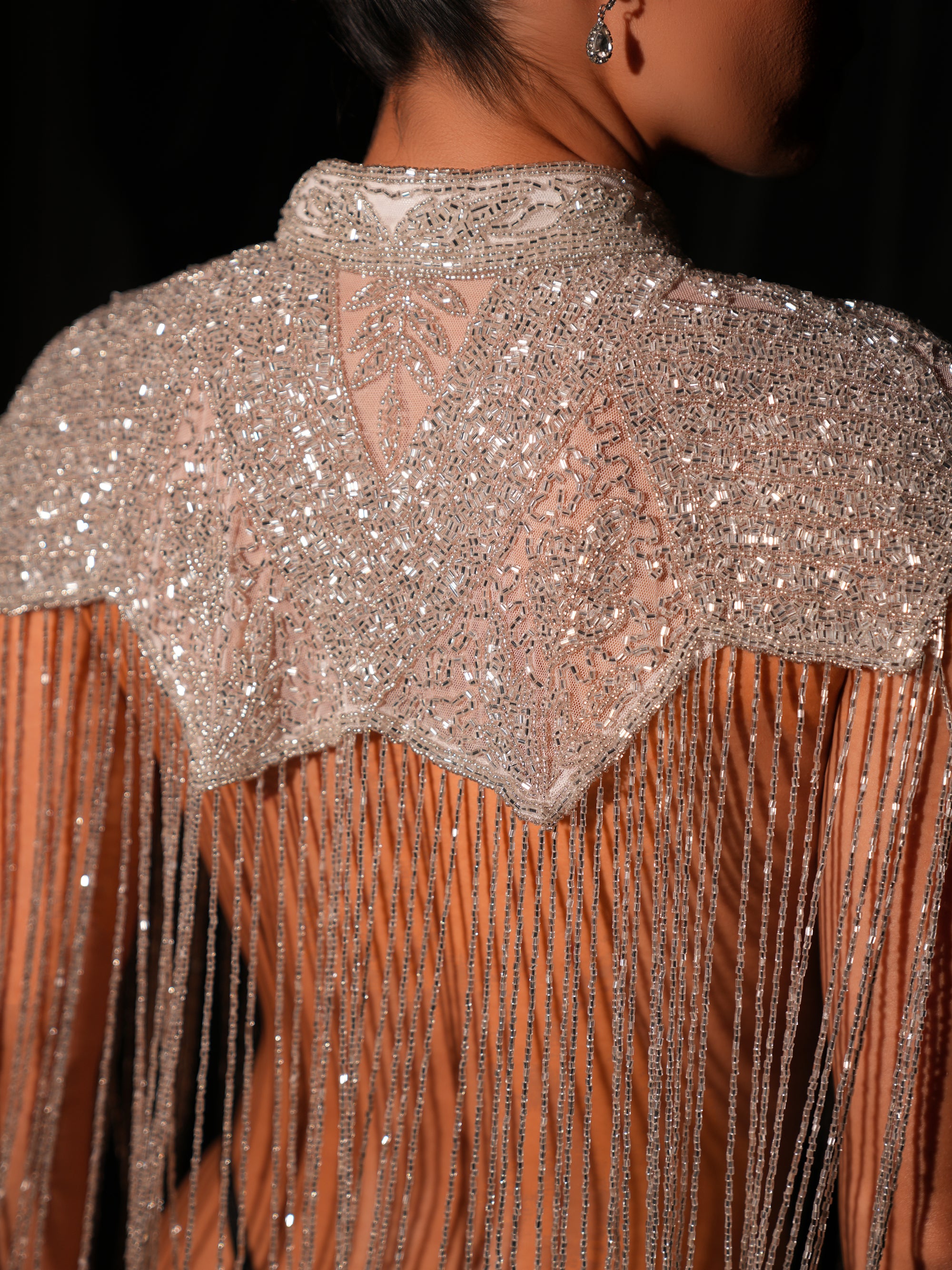 - Handmade designed silver sequins, glass beads and stones.